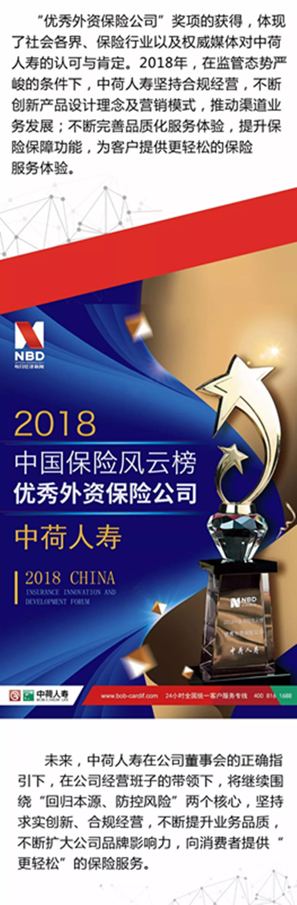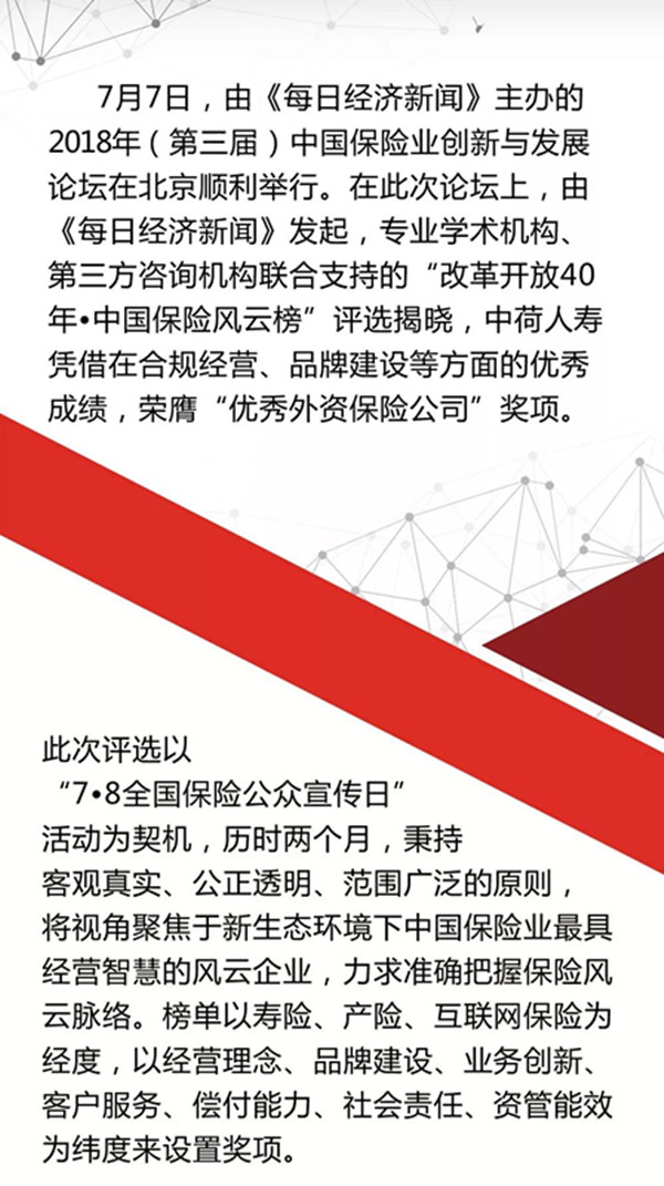 中荷人壽榮獲2018年度“優(yōu)秀外資保險(xiǎn)公司”獎(jiǎng)項(xiàng)