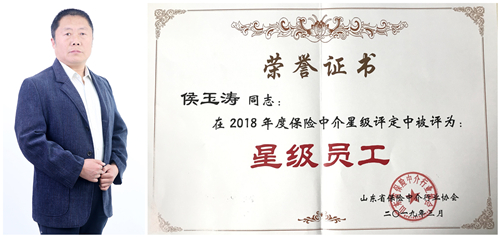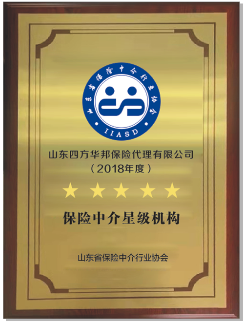 在對2018年度的表彰中,山東四方華邦保險代理有限公司被評為“保險中介五星級機構”,濰坊分公司張明杰經理被省行業(yè)協會評為“五星級員工”,泰安分公司侯玉濤經理被省行業(yè)協會評為“星級員工”。
