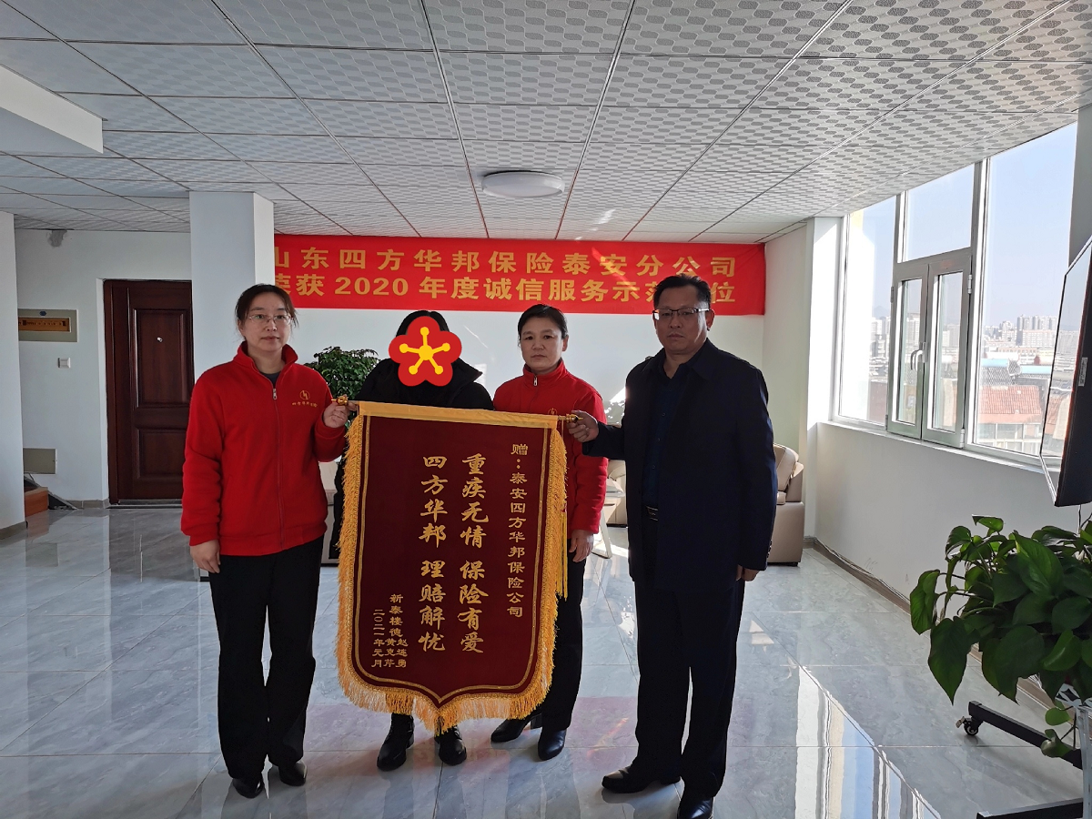 客戶家人一再對王明剛總表示感謝,慶幸當(dāng)初沒辦理退保。客戶的妻子黃XX通過理賠服務(wù),也非常的認(rèn)可我公司代理的保險,在我們公司也辦理了中荷和信泰的重疾險和百萬醫(yī)療險。非常不幸的是,黃女士于2020年4月查出了卵巢癌,截止目前共住院治療28次,中荷公司合計(jì)賠付了140920元,信泰公司合計(jì)賠付了197217元,趙先生和黃女士對于我們的服務(wù)特別認(rèn)可,特送錦旗以表謝意!而且客戶也充分認(rèn)識到保險的重要性,給其女兒也在我們公司辦理了醫(yī)療險。