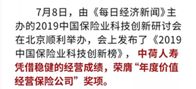 中荷人壽榮獲“年度價(jià)值經(jīng)營(yíng)保險(xiǎn)公司”獎(jiǎng)