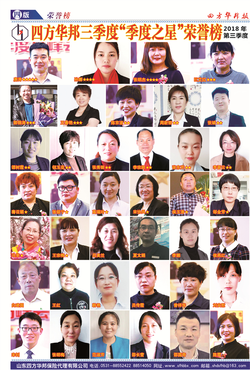2018年三季度“季度之星”榮譽(yù)榜