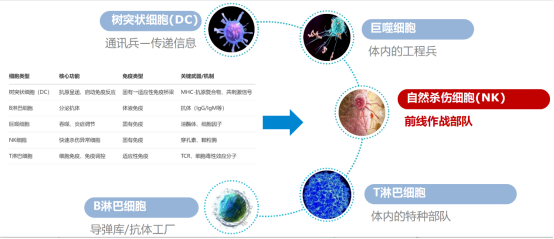 NK細(xì)胞:快速反應(yīng)的“巡邏兵”:無(wú)需提前識(shí)別,就能直接攻擊癌細(xì)胞和異常細(xì)胞,尤其在腫瘤早期或癌細(xì)胞數(shù)量較少時(shí),能及時(shí)遏制其發(fā)展。腫瘤高危人群以及家族史人群的最佳選擇。