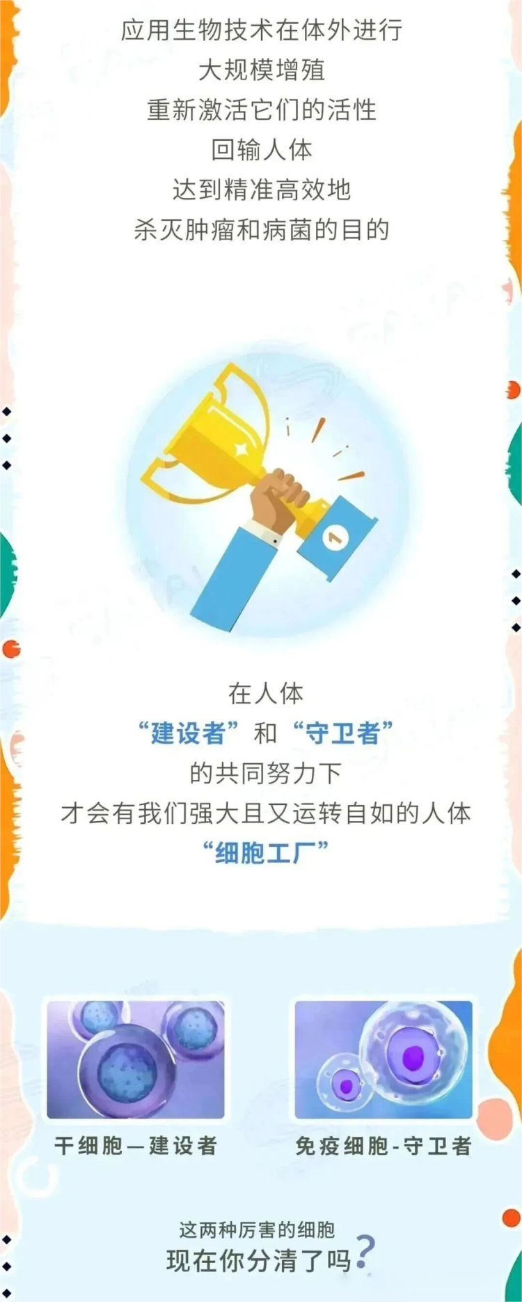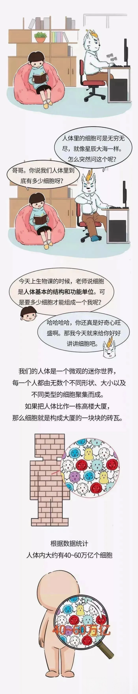 人類身體像一個由細胞構成的地球村,里面居住著約40-60萬億的居(細)民(胞)。這個世界及其精密復雜,幾十億居民共同維護身體的健康秩序。