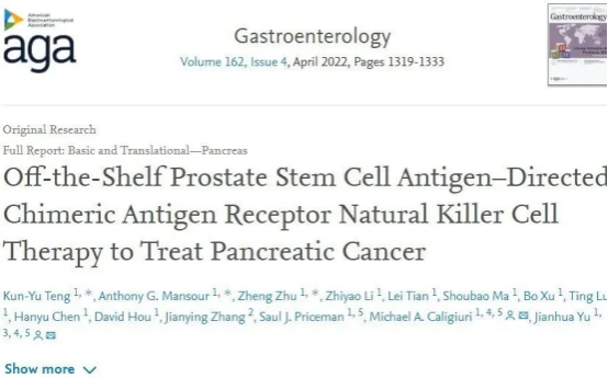 2022年1月6日,《Gastroenterology》發(fā)表的一項(xiàng)創(chuàng)新研究表明,CAR-NK技術(shù)對胰腺癌具有一定的潛力,有望成為未來治療的重要方向。研究發(fā)現(xiàn)60%-80%的胰腺癌患者表達(dá)前列腺干細(xì)胞抗原(PSCA),而針對該靶點(diǎn)構(gòu)建的CAR-NK細(xì)胞展現(xiàn)出了良好的可行性、安全性及治療潛力。