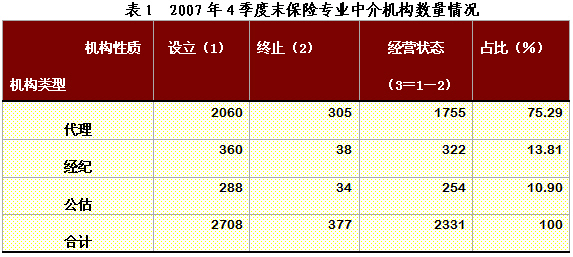 二○○七年保險(xiǎn)中介市場(chǎng)發(fā)展報(bào)告 2007年,保險(xiǎn)中介市場(chǎng)繼續(xù)保持良好發(fā)展勢(shì)頭。截至 一、保險(xiǎn)專(zhuān)業(yè)中介機(jī)構(gòu) ?。ㄒ唬┗厩闆r 截至 |